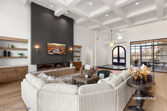 Discover a reimagined luxury masterpiece in guard-gated Bellacere, set along the fairways of TPC Las Vegas in Summerlin. This rare single-story estate blends timeless architecture with modern refinement, featuring a grand living room with 16′ coffered ceilings and floor-to-ceiling windows framing sweeping golf and mountain views. Resort-style grounds include a beach-entry heated pool with grotto spa, waterfall, slide, swim-up bar, firepit and BBQ.