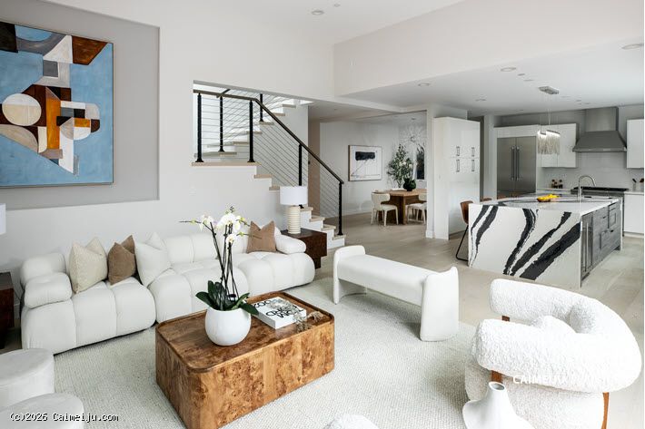 这座住宅位于 Flood Park 社区,于 2021 年重建完成,由 T-Square Architects 设计,注重自然采光与室内外一体化生活体验。外立面以浅色灰泥结合石材细节,并搭配钢与玻璃元素,呈现简洁而现代的建筑风格。室内铺设浅色实木地板,宽阔过道增强空间通透感。起居室设有通顶壁炉,一层卧室套房可灵活作为客房或书房使用。