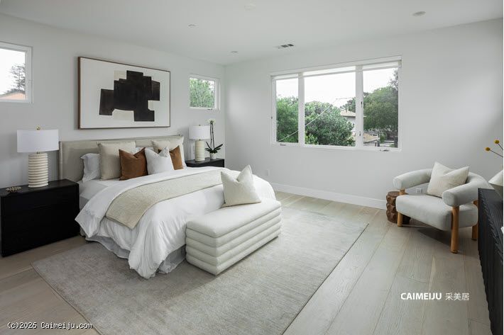 二层主卧套房配备双台盆、独立式浴缸、玻璃淋浴间及独立卫浴区。住宅还设有独立洗衣房(含洗衣机与烘干机)、即热式热水系统及分区空调系统。邻近公园、通勤路线及 Menlo Park 学校资源,在便利与品质之间实现平衡。