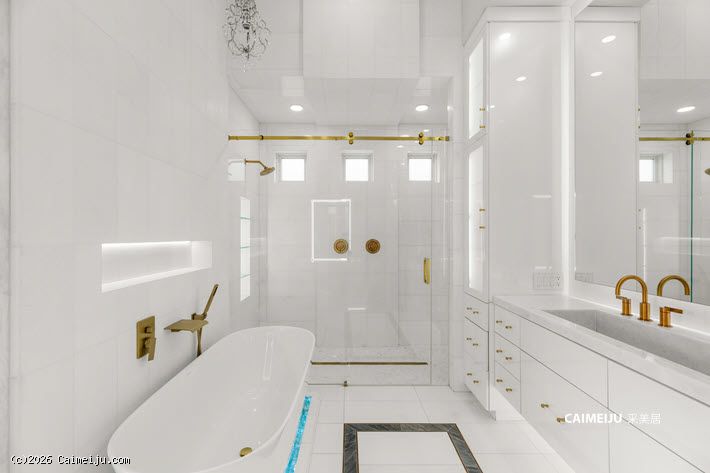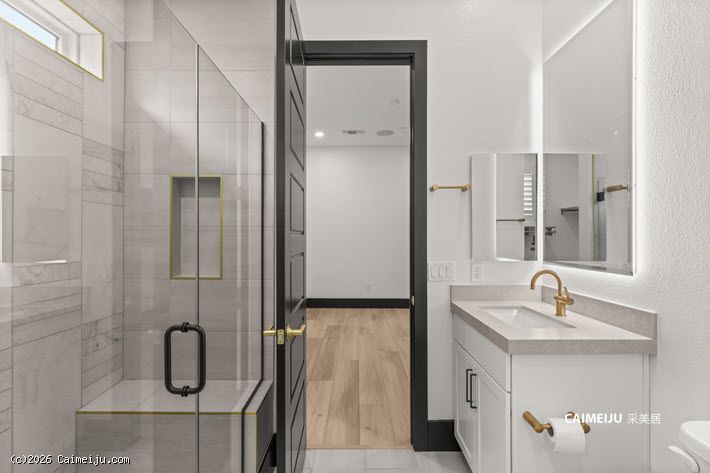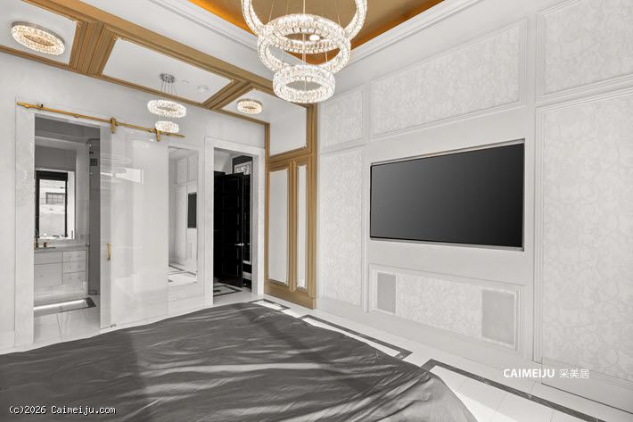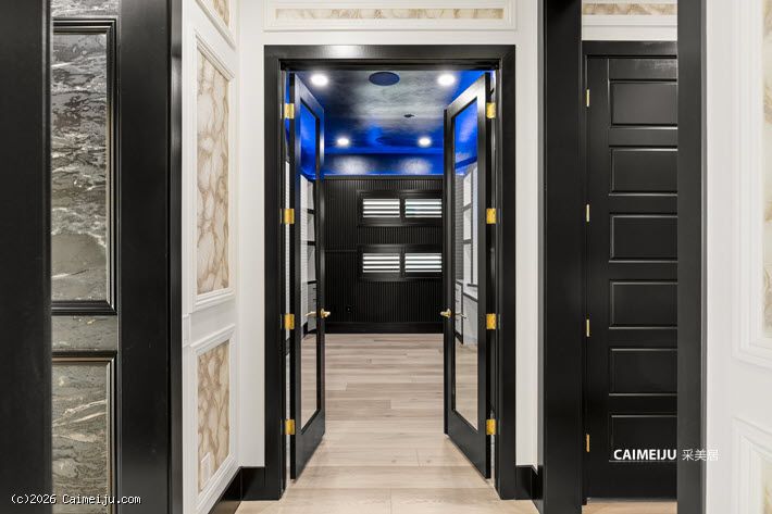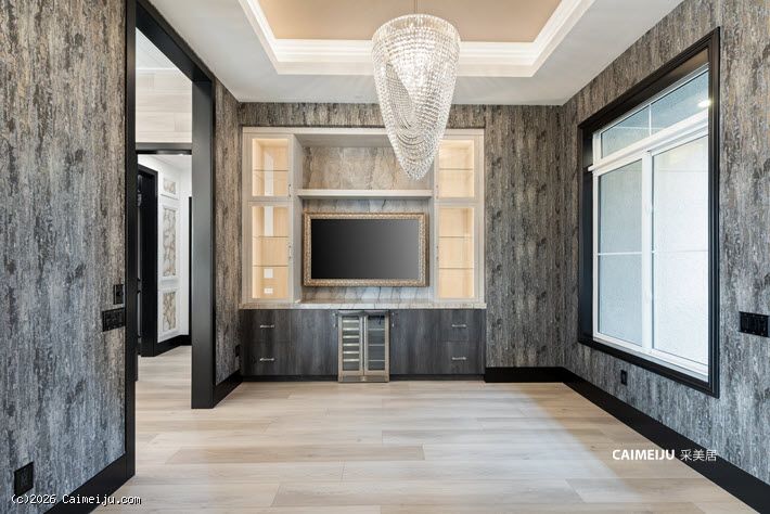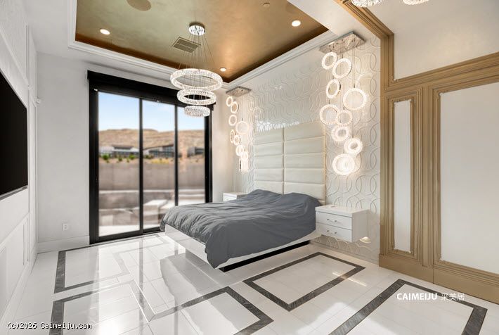 主卧套房宛如私属静谧会所,大面积大理石饰面、定制木作工艺与隐形衣柜门设计相得益彰,在低调中彰显不凡品位。整体空间以社交与待客为导向设计,客厅与主卧均配置可完全开启的叠合式玻璃门,实现室内外生活的无界切换。专业级隔音影音室已完整配置,满足高端流媒体观影与游戏娱乐需求;后院则设有私家泳池与水疗池,成为放松身心的理想场域。