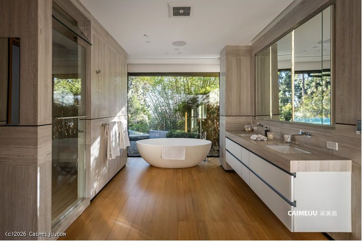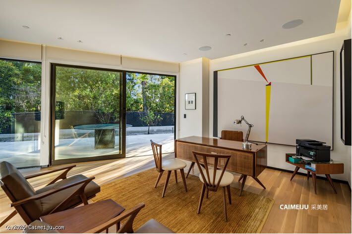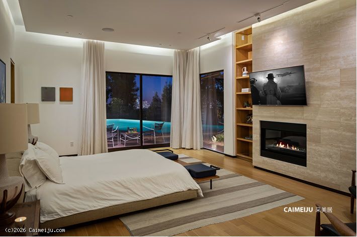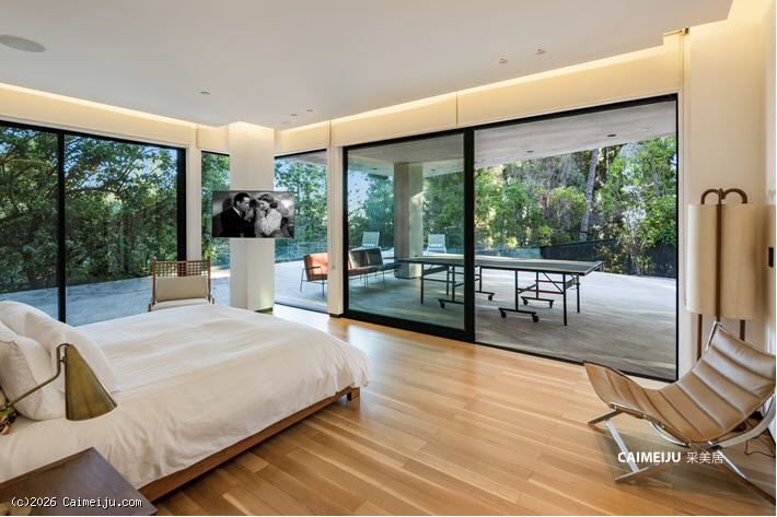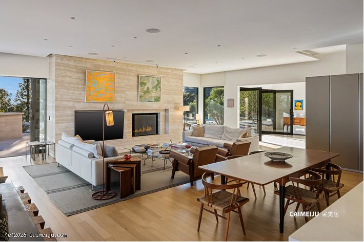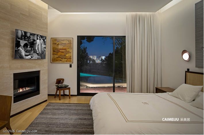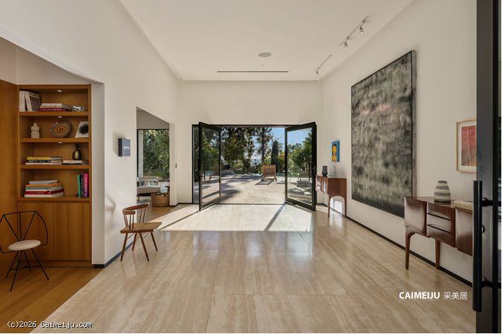 这座位于比佛利山庄的非凡私邸,始建于 1957 年,最初为好莱坞黄金时代 米高梅影业(MGM)传奇制片人 Eddie Mannix 量身打造,承载着深厚的历史底蕴。此后宅邸经历了彻底重塑与扩建,现拥有 逾 8,000 平方英尺(约 743 平方米) 的奢阔居住空间,在传承与当代设计之间达成高度统一。建筑外立面甄选再生原木,低调而富有质感;室内则以天然石材与利落的现代线条为基调,营造出克制、纯粹且极具艺术张力的空间氛围。整座住宅以艺术收藏为核心理念进行规划,画廊式走廊与专业灯光系统相辅相成,令每一件藏品皆可在最佳状态下呈现。大幅玻璃推门可完全隐入墙体之中,使室内起居空间与后院景观无缝衔接,户外则设有无边际泳池、火炉休闲区及全套户外厨房,尽显度假式生活格调。