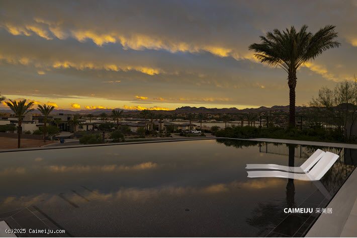 想象每天清晨被 Lake Las Vegas 湖面闪烁的倒影唤醒,远山环绕,您在天空露台上品味第一杯咖啡。这座庄园坐落于三重安保大门之后的高地地块上,不仅是一处住宅,更是一种专属于优雅与私密的度假式生活方式。抵达时,现代感十足的瓷砖立柱与建筑立面相映成辉,展现出永恒的建筑美感。