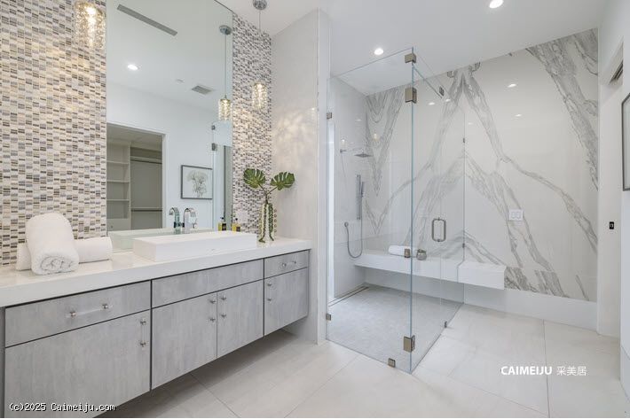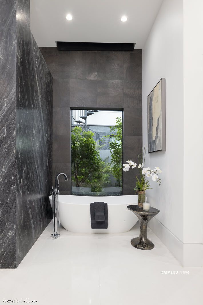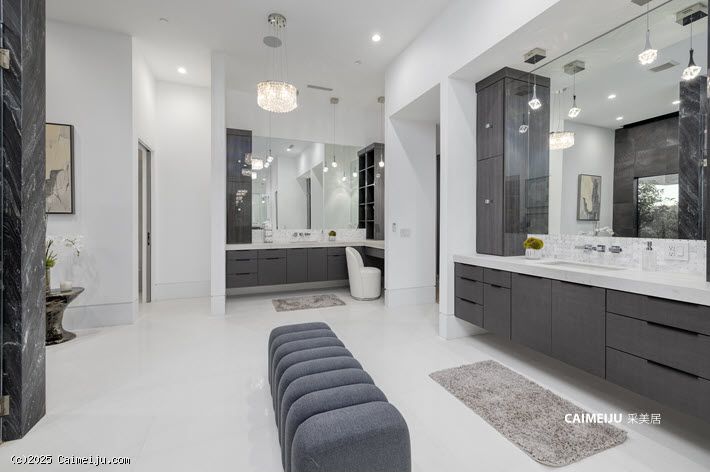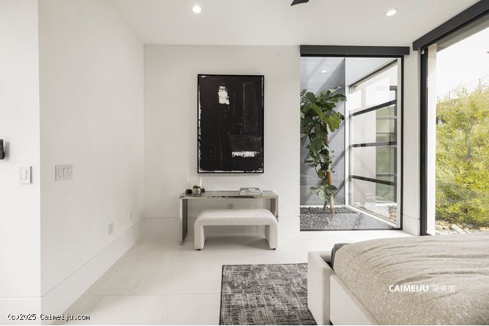 私密的主卧套房如同水疗度假馆,配有多功能蒸汽淋浴、独立浴缸及私家休憩区,窗外绿意盎然。独立咖啡吧与定制柜体让您在宁静中开启每一个早晨。额外的套房卧室、独立客房与环绕庭院玻璃的办公室,为家庭与访客提供舒适灵活的空间。