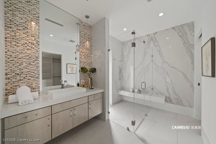 私密的主卧套房如同水疗度假馆,配有多功能蒸汽淋浴、独立浴缸及私家休憩区,窗外绿意盎然。独立咖啡吧与定制柜体让您在宁静中开启每一个早晨。额外的套房卧室、独立客房与环绕庭院玻璃的办公室,为家庭与访客提供舒适灵活的空间。