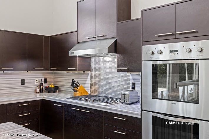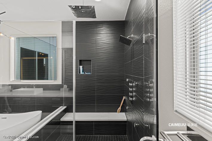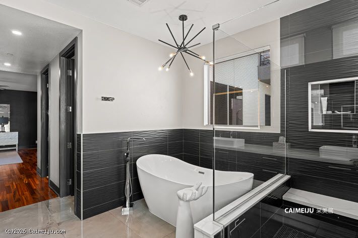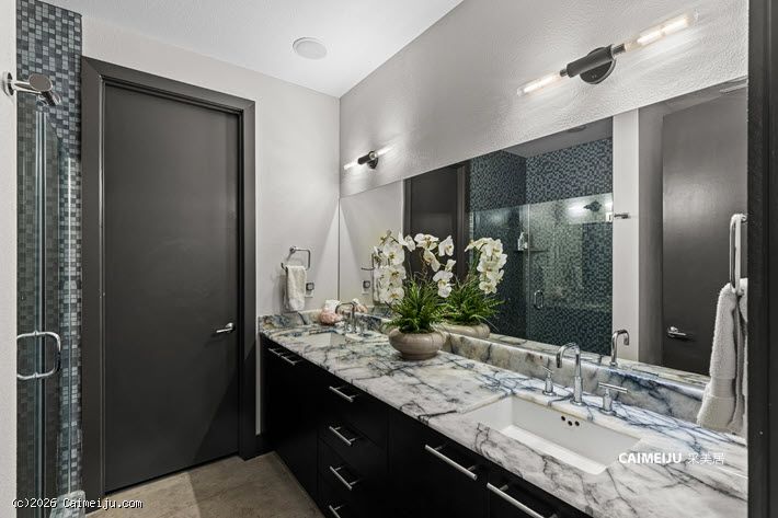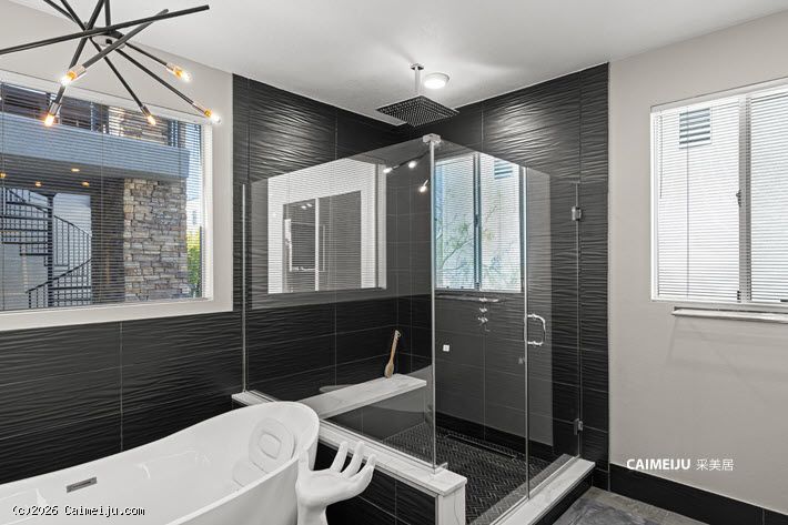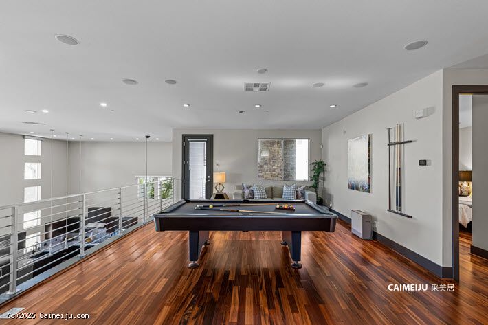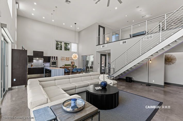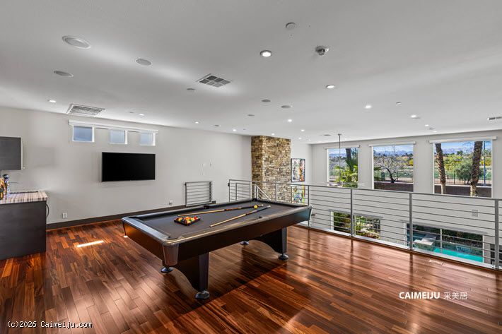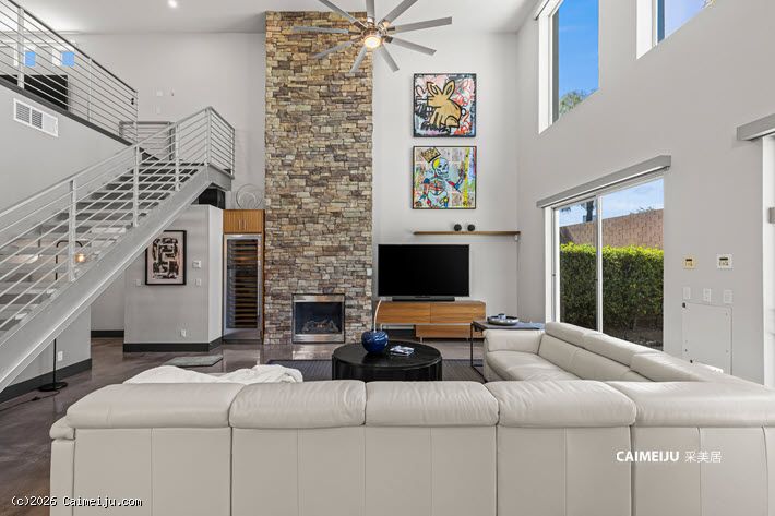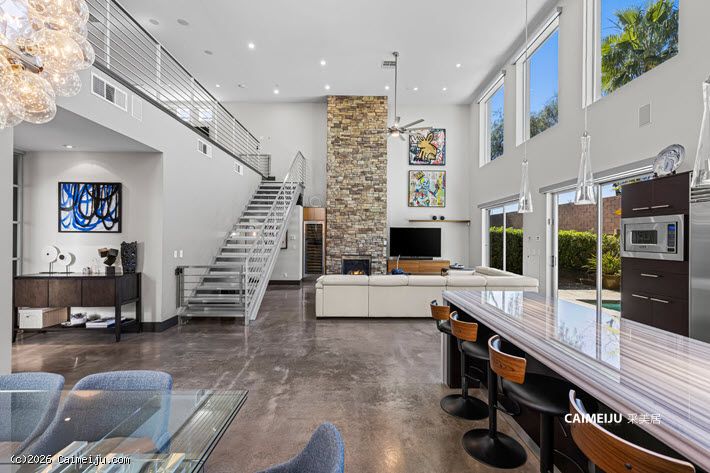 通过螺旋楼梯可抵达屋顶露台,设有壁炉,可远眺 Las Vegas Strip 与山景。住宅还配备全屋净水系统,在现代设计与生活舒适之间实现平衡。