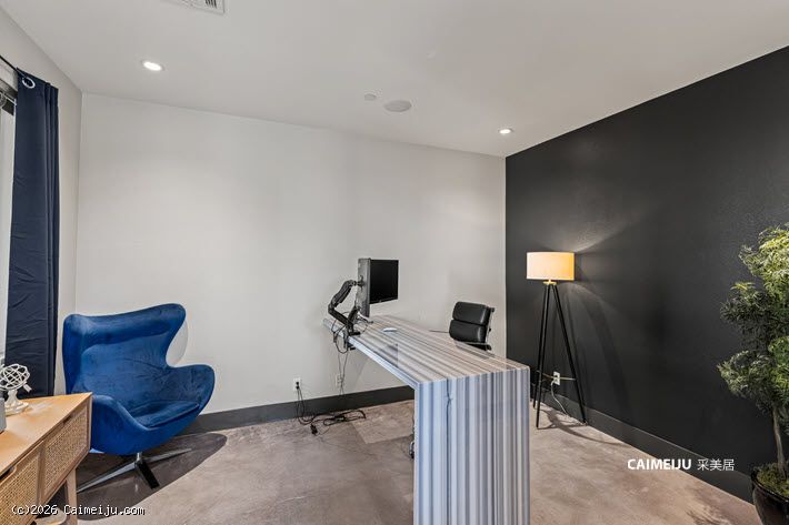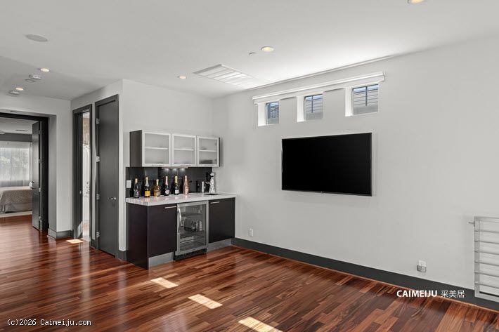 一层设有独立书房、客用洗手间、洗衣区、一间套房卧室及三车位车库。楼上为开放式阁楼空间,配备带水槽吧台。主卧套房设有双步入式衣帽间,另有一间卧室与完整卫浴,并通向私享露台。