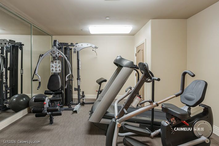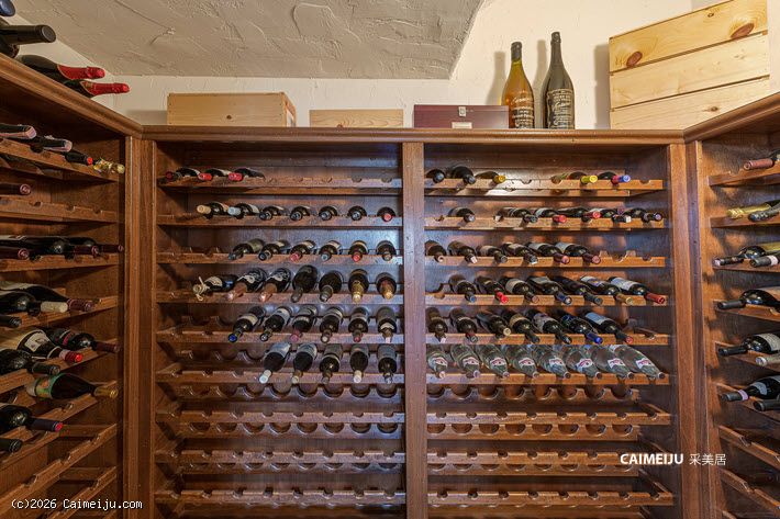 厨房以专业烹饪为导向,配备定制橱柜、Viking 不锈钢电器及商用级排风系统。全屋层高开阔,细节处理考究,营造出沉稳而有层次的空间氛围。室内还设有带水槽吧台、约 320 瓶容量酒窖、蒸汽淋浴、按摩浴缸、健身空间及独立影音室。