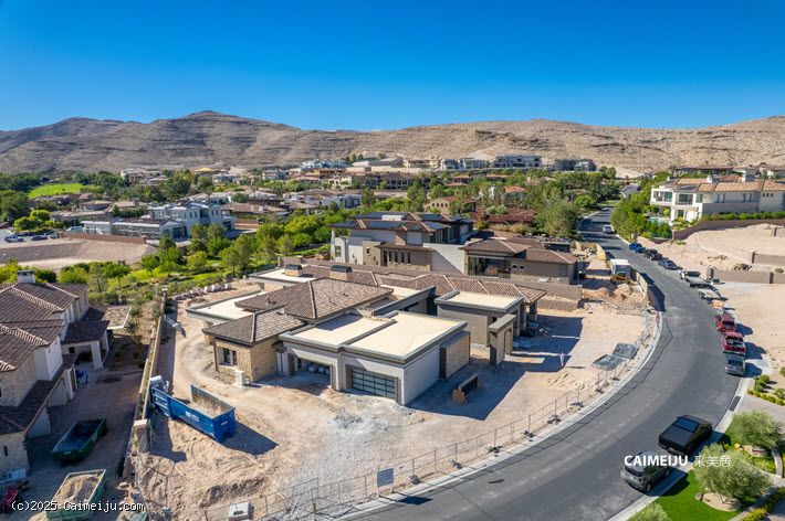 这座由 Growth Luxury Homes 精心打造的全新定制豪宅,位于享有盛誉的守卫社区 Southern Highlands Country Club,占地约 0.84 英亩,建筑面积约 7,000 平方英尺,为单层布局。整体设计融合了欧洲风格的优雅与现代建筑的精致感,室内天花高度达 12 至 16 英尺,并配有 14 英尺高的进口隐藏式推拉门,实现室内外空间的无缝衔接。
