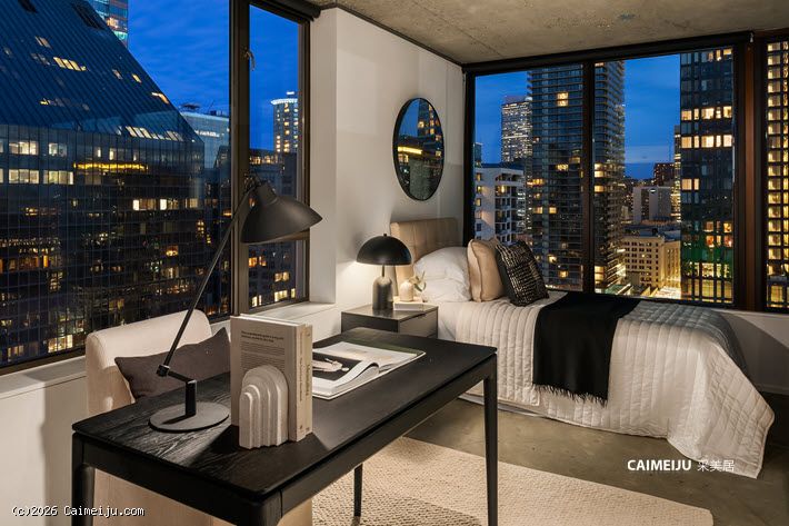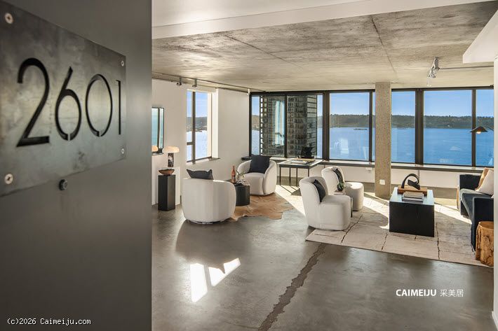 这套由知名建筑师 Jim Olson 设计的定制顶层公寓,室内面积约2,800平方英尺,拥有环绕式景观视野,并以外露混凝土与定制钢制元素呈现出鲜明的现代工业美学。开放式厨房配备高端电器及双独立酒品储藏系统,兼具功能性与设计感。宽敞的主卧套房设有步入式衣帽间与水疗风格浴室,营造私密而放松的居住体验。第二空间可灵活作为办公室或客房使用,并新增一间客用浴室,另设内置吧台,适合社交与娱乐。大楼提供完善的配套设施,包括驻场管理人员、游泳池、桑拿房、健身房及两个专属停车位,全面满足高端城市生活所需。