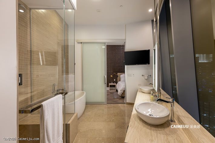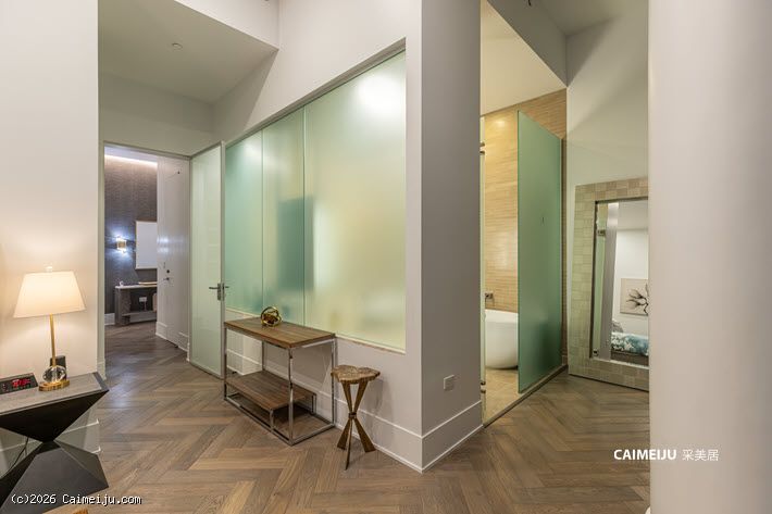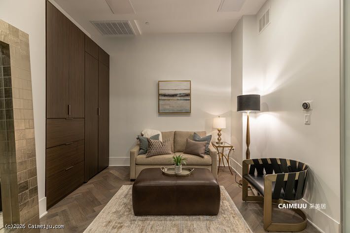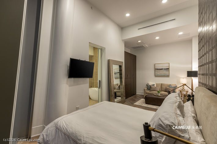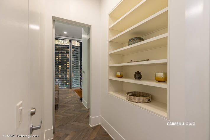 室内空间围绕景观展开布局,大面积玻璃幕墙引入充沛自然光线,使起居空间与城市景致形成自然延伸。两卧室设计兼顾舒适与私密,整体居住体验以开阔视野为核心。