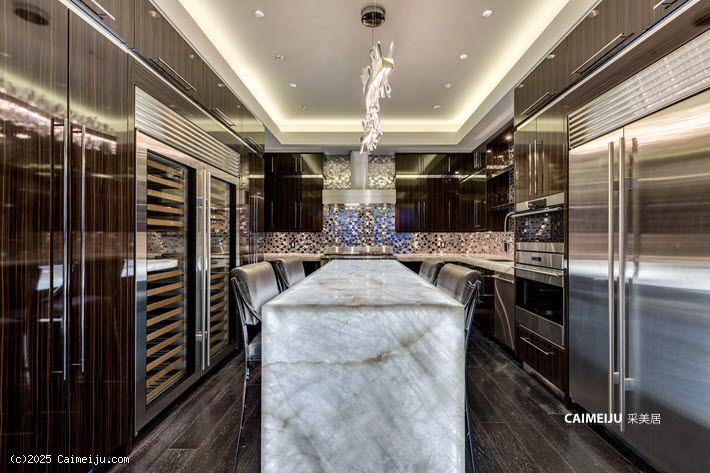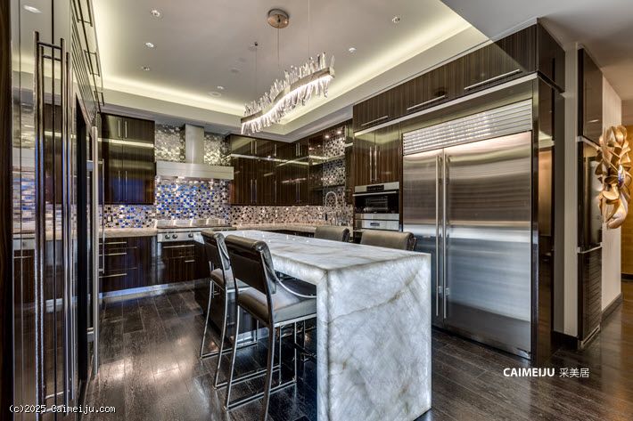 奢华的华尔道夫定制顶层公寓,以名人设计师 Christopher Guy 的室内设计与全套家具精心打造,呈现极致品味。厨师级厨房独一无二,配备定制石英岩台面与可发光玛瑙中岛、250 瓶酒柜、斑马木手工乌木橱柜、Bali Bali 五金、Grohe 配件、Wolf 厨电等众多顶级配置,令人叹为观止——绝对值得亲临体验。