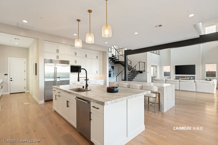 这座由 Toll Brothers 打造的现代住宅设有五间卧室与六间浴室,将大胆的建筑设计与高端精湛工艺完美结合。设计师级厨房是整座住宅的核心亮点,配备瀑布式中岛以及 Wolf、Sub-Zero 和 Cove 等顶级家电。五间卧室均设有独立套内浴室,其中一间位于一楼的套房非常适合宾客使用。楼上的主卧套房设有休憩区与私人阳台,可欣赏令人惊艳的拉斯维加斯大道景观,尽显现代奢华生活格调。