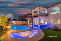 这栋5,000平方英尺的住宅位于拉斯维加斯大道附近的门禁社区。房屋投入30万美元进行翻新,包括地下室一个价值10万美元的定制健身房。游泳池已全面升级,配备Pentair设备、瀑布、火焰、雾气效果和露台落雨功能。泳池旁设有一个下沉式火炉,带变色LED灯。
