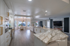 户外区域包括一个设备齐全的厨房,适合待客。室内有两个大型现代壁炉、新橱柜、瓷板和石英台面。房屋带全套家具,可立即入住。
