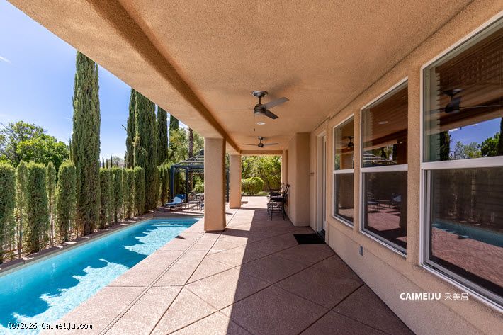 户外空间以休闲与娱乐为核心,设有盐水加热泳池、庭院入口、内置烧烤区、户外壁炉及凉亭。阳台层设有热水浴池,可欣赏拉斯维加斯大道景观。