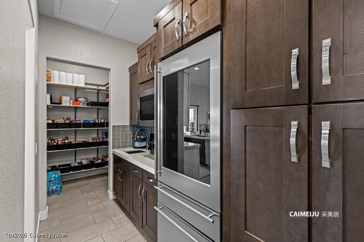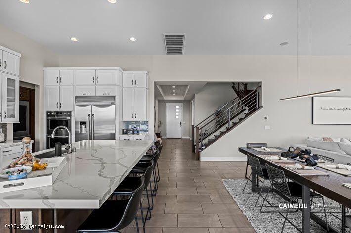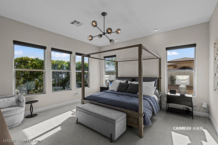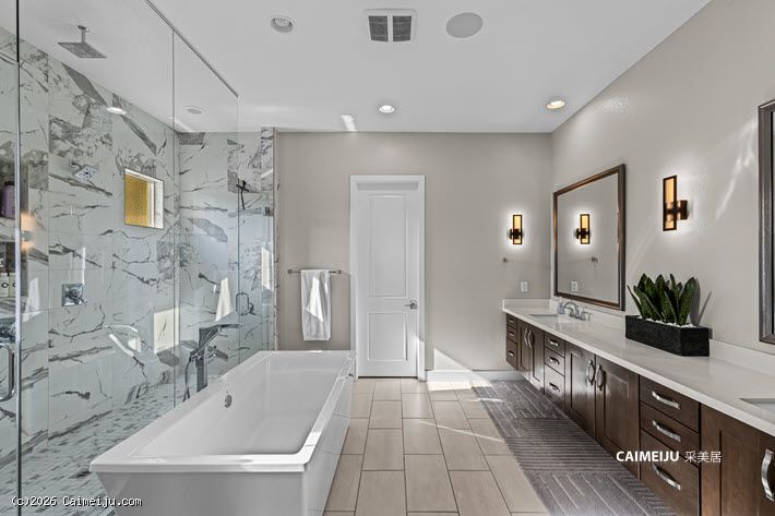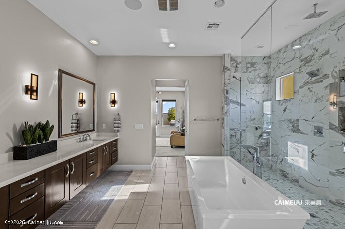 室内以专业级厨房为核心,石材台面与高端电器彰显品质格调,超大管家式备餐间充分满足高端宴请与日常收纳需求。位于一层的主卧套房自成私密天地,设有独立起居区与咖啡吧,并可直通泳池区域;配套水疗级卫浴空间内,浸泡式浴缸与雨淋花洒共同打造放松身心的私享体验。楼上规划多间带独立卫浴的卧室,并设有灵活 Loft 空间,适合打造家庭影院或多功能娱乐区。