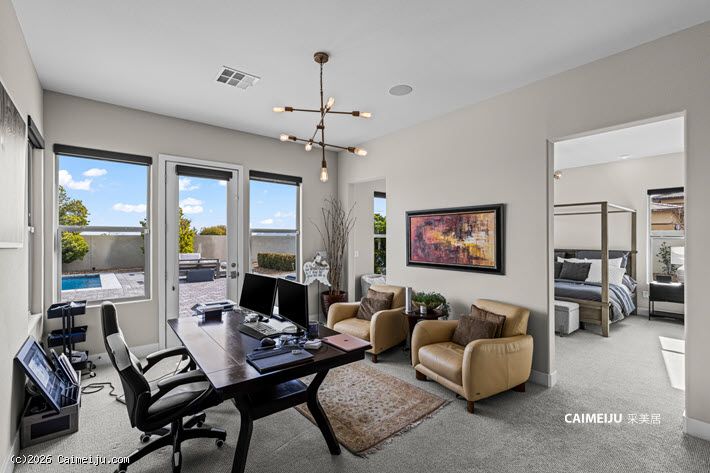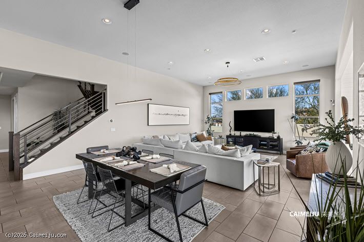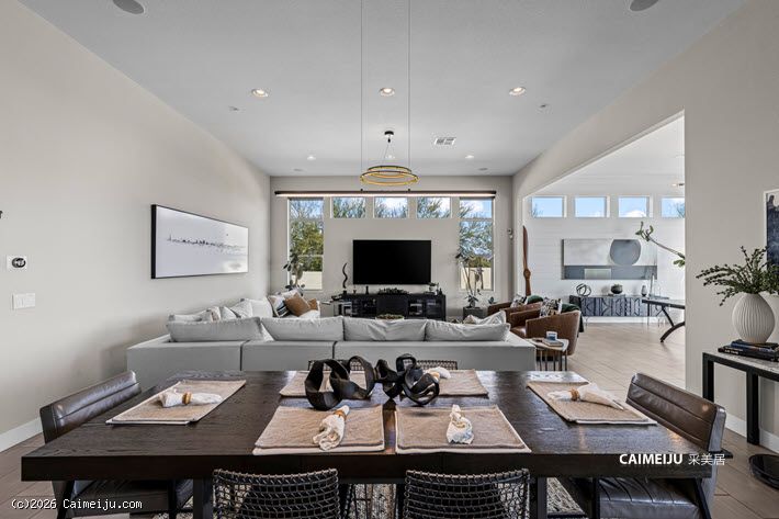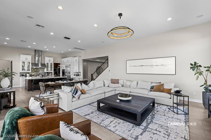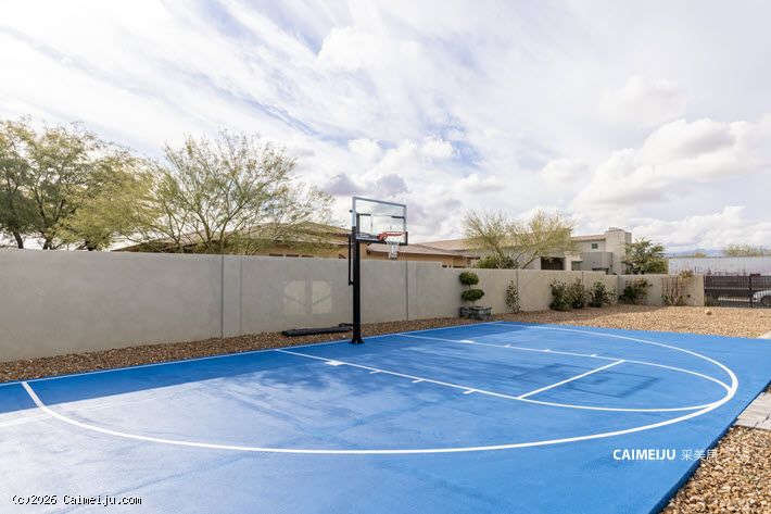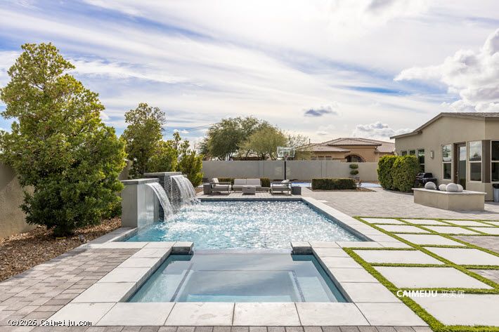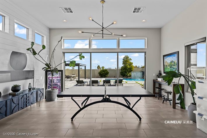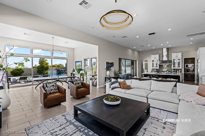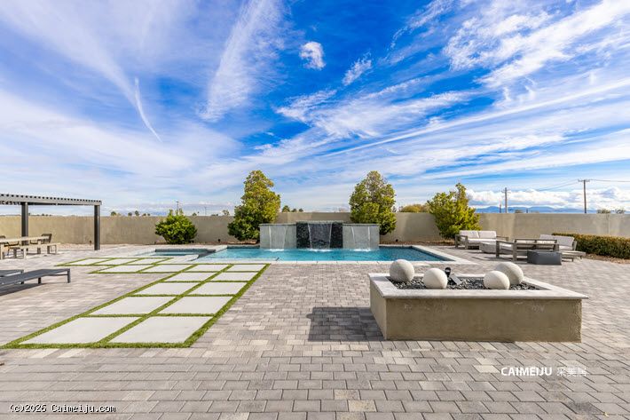 这座现代风格私邸坐落于约半英亩的转角大地块之上,整体规划围绕无缝衔接的室内外生活方式展开。可开启的整面玻璃移门将室内空间自然延展至度假式后院,泳池、水疗池、景观火炉与凉亭相映成趣,营造出宛如私人度假会所般的生活场景。户外场地同时配备平整草坪、带门禁的房车停放区,以及可用于篮球或匹克球的多功能运动场,兼顾休闲与活力。