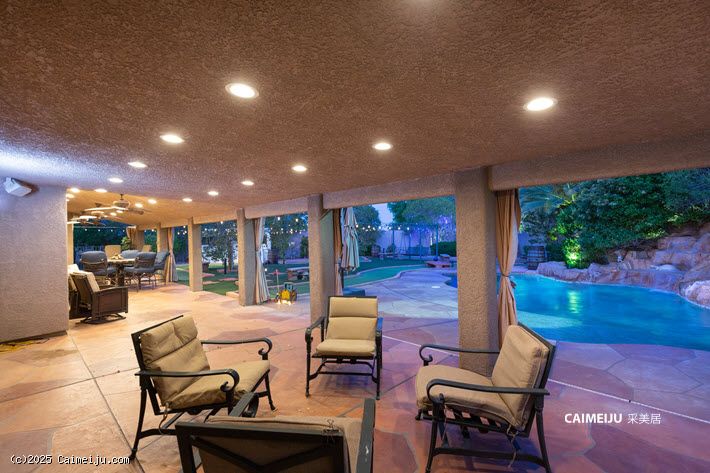 这栋住宅有四间大卧室、一间媒体室和一间独立家庭活动室。厨房配有定制橱柜、花岗岩台面,烹饪和待客空间充足。室外设有带瀑布的游泳池、一个大型带顶露台,以及一个带景观的挑高平台。另有一间私人健身室。物业包括一个双车位车库和一个独立的房车车库。房屋升级了照明设备,并采用高品质装修。