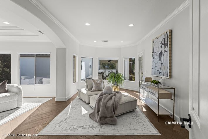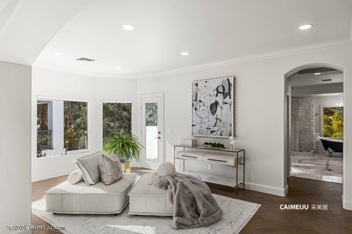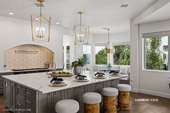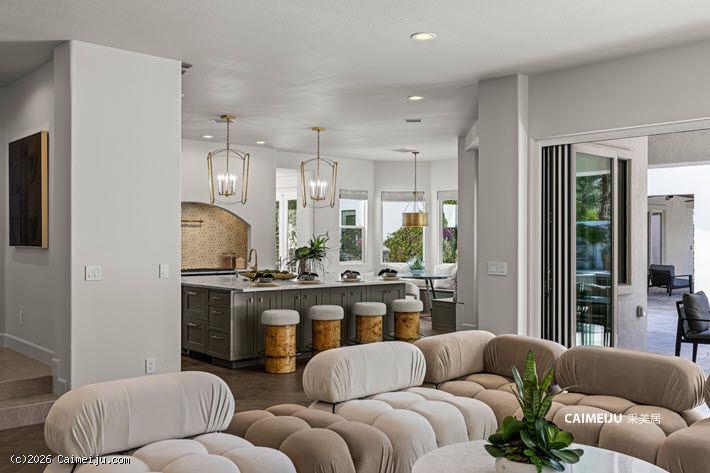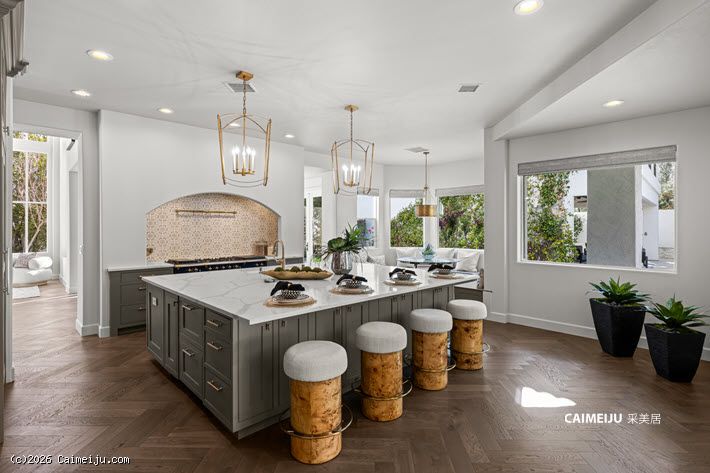 这座半定制奢华府邸位于 Summerlin 顶级的 Country Club Hills 尊贵私密社区内,静踞于私属回旋路尽头,私密性与安全性兼得。物业占地约 0.39 英亩,建筑面积逾 6,500 平方英尺,主宅以现代法式乡村风格呈现,人字拼胡桃木地板、定制橱柜与专业级 Lacanche 法国炉具相互映衬,在经典格调中融入当代品位。