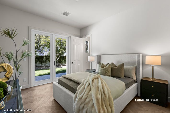 园区内另设独立的双层客居别墅,配置 2 卧 2 卫,并配有蒸汽淋浴,既适合贵宾下榻,也可作为多功能私属空间。整体景观以度假会所级标准打造,泳池、内嵌式烧烤台与披萨烤炉被成熟绿植环绕,营造出从容优雅的社交与休闲场景。